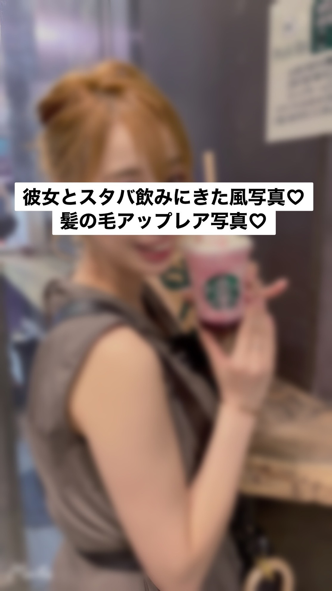 💓彼女とスタバ飲みに来た写真💓(髪の毛up)