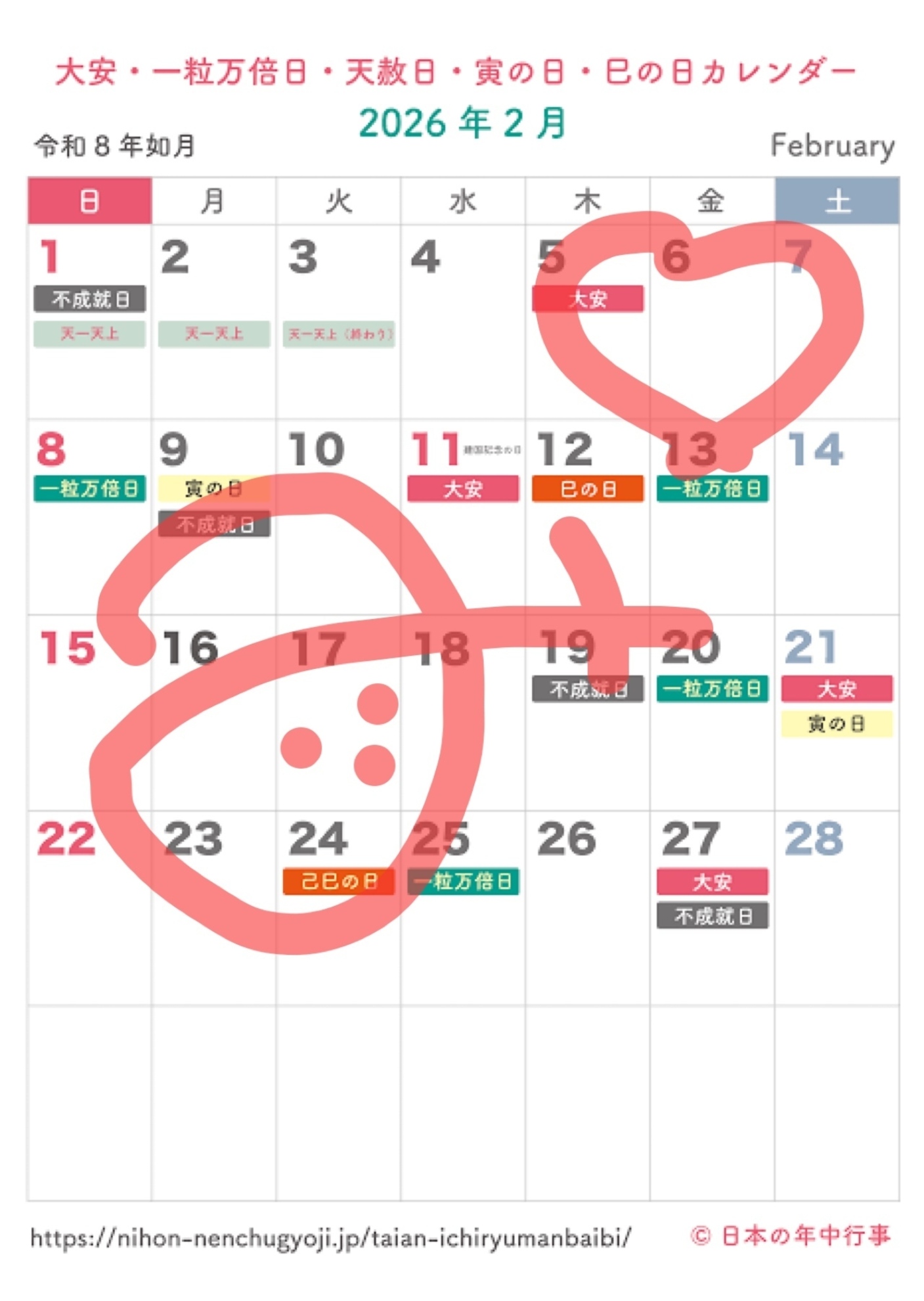 2月カレンダー👹🫘🍫